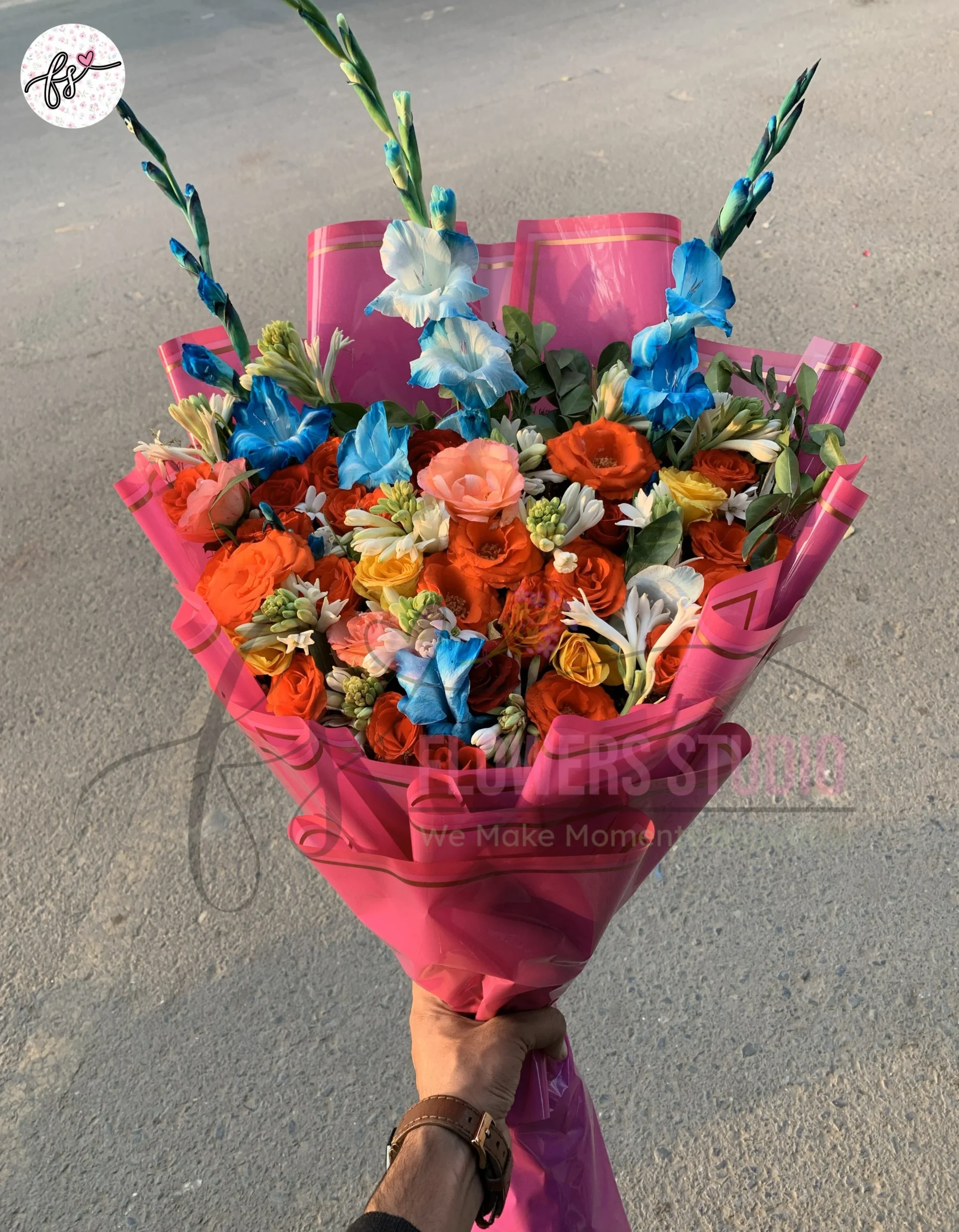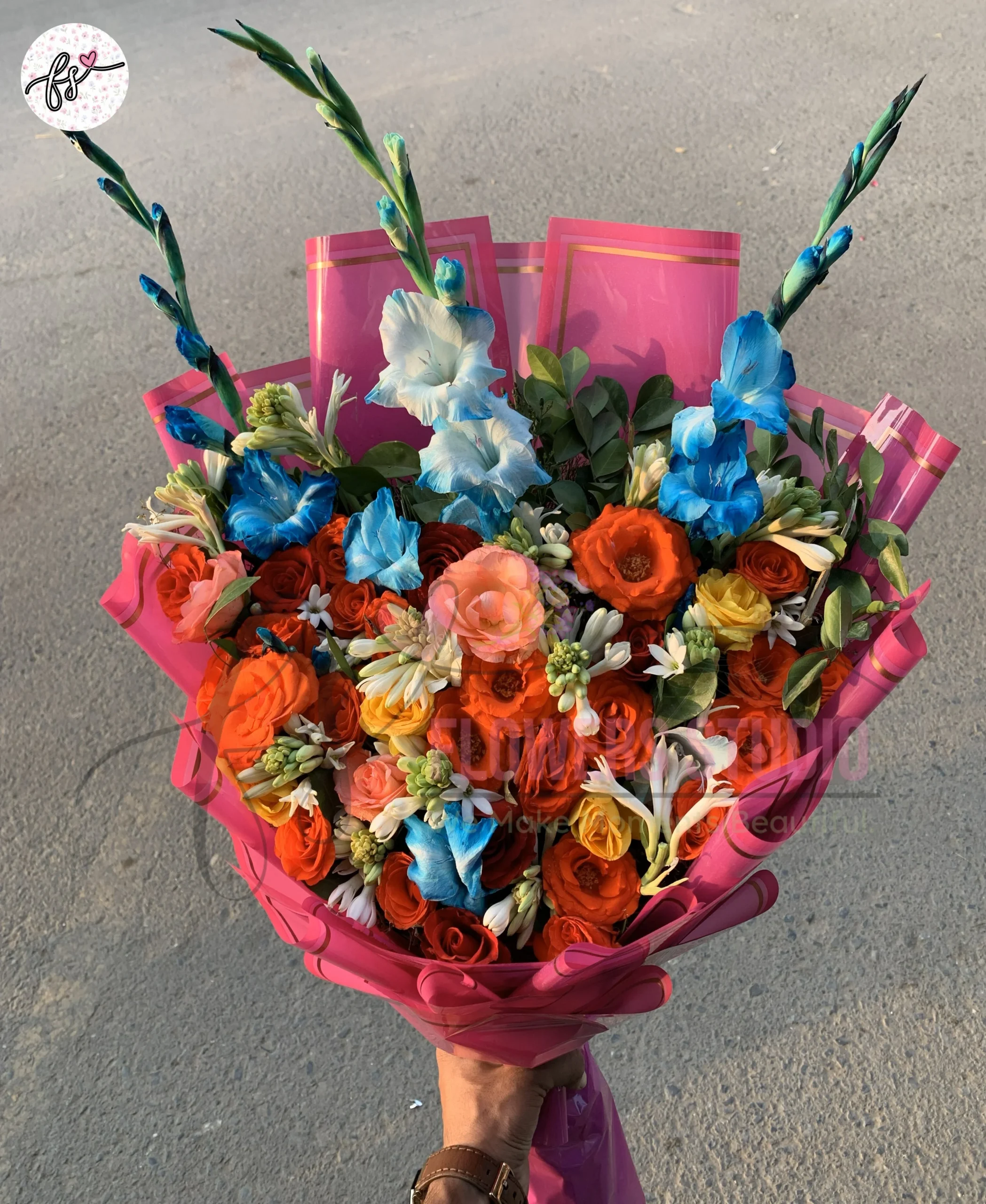 The Fresh Mixed Flower Bouquet Red Roses Gladiolus Tube Roses Faisalabad is a vibrant and elegant floral arrangement featuring fresh red roses, graceful gladiolus, and fragrant tube roses. Expertly handcrafted by Flowers Studio in Faisalabad, this mixed flower bouquet offers a perfect balance of beauty, fragrance, and premium presentation.