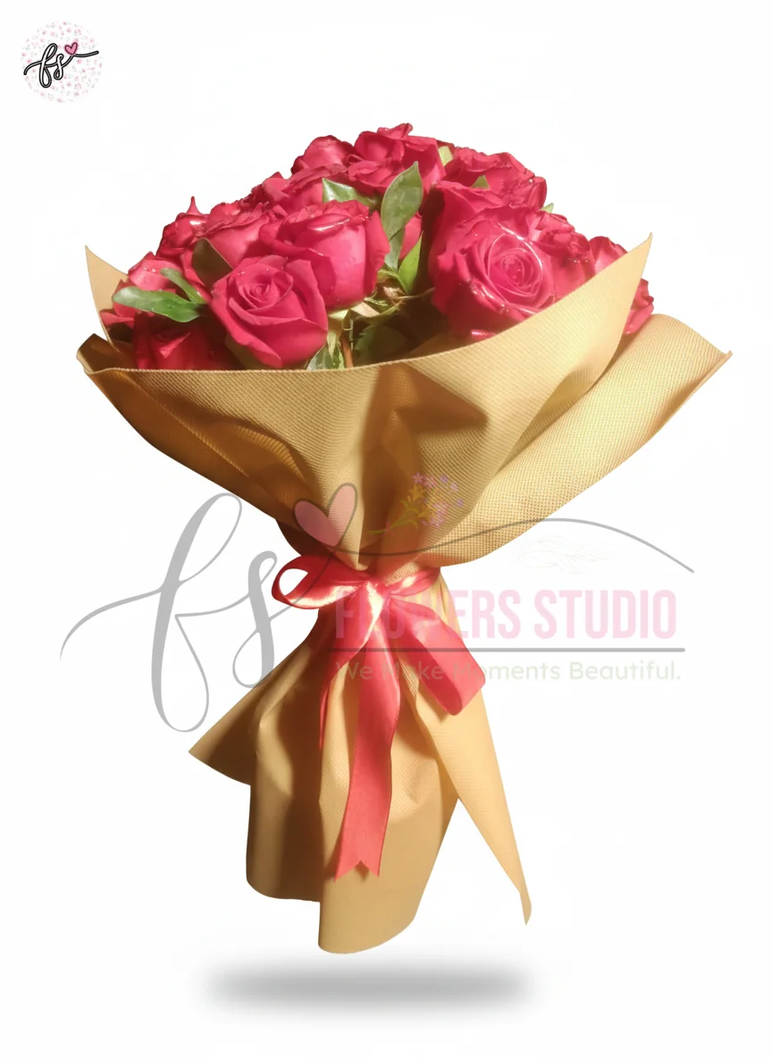 Modern red rose bouquet with light brown premium wrap, perfect for romantic gifting, anniversaries, and surprise celebrations with fresh premium roses.