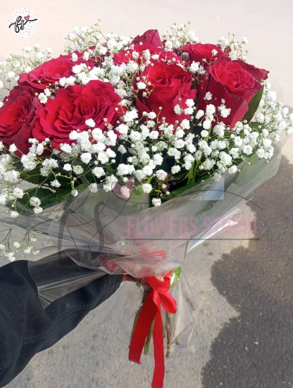 The combination of red roses and babys breath symbolizes love, purity, and admiration, making this bouquet perfect for weddings, anniversaries, romantic gestures, or special celebrations. Its elegant design ensures a memorable gifting experience that impresses every recipient.