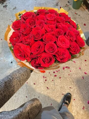 Surprise your loved ones with this beautiful bouquet featuring fresh red roses complemented by delicate white flowers. The elegant white wrapping adds a clean and sophisticated touch, making this arrangement ideal for birthdays, anniversaries, romantic gestures, or special celebrations. Crafted with high-quality flowers at an affordable price, this bouquet creates a memorable and visually stunning gift that delights anyone receiving it.