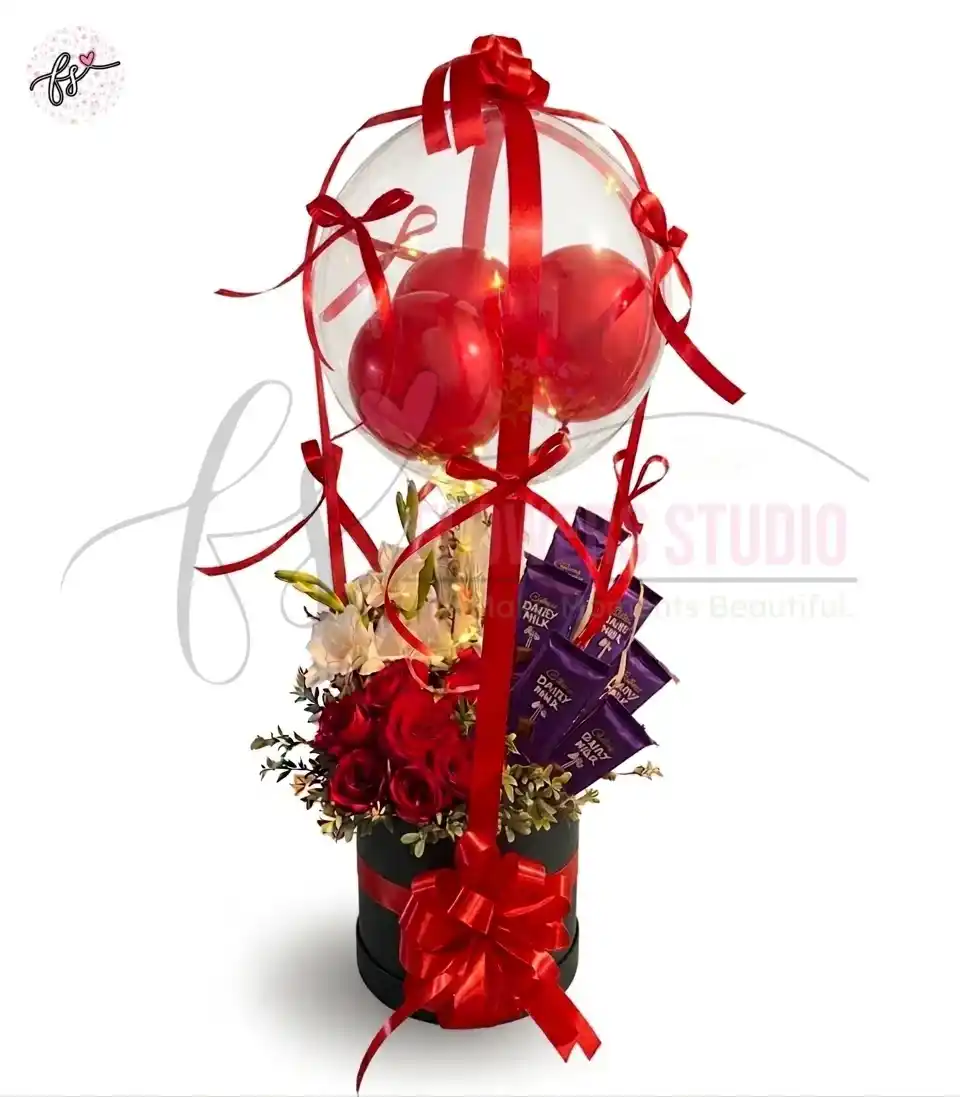 Crafted with high quality at an affordable price, this gift is ideal for birthdays, anniversaries, Valentine’s Day, or romantic surprises. The combination of fresh flowers, delicious chocolates, and colorful balloons creates a joyful and memorable experience for your loved ones.