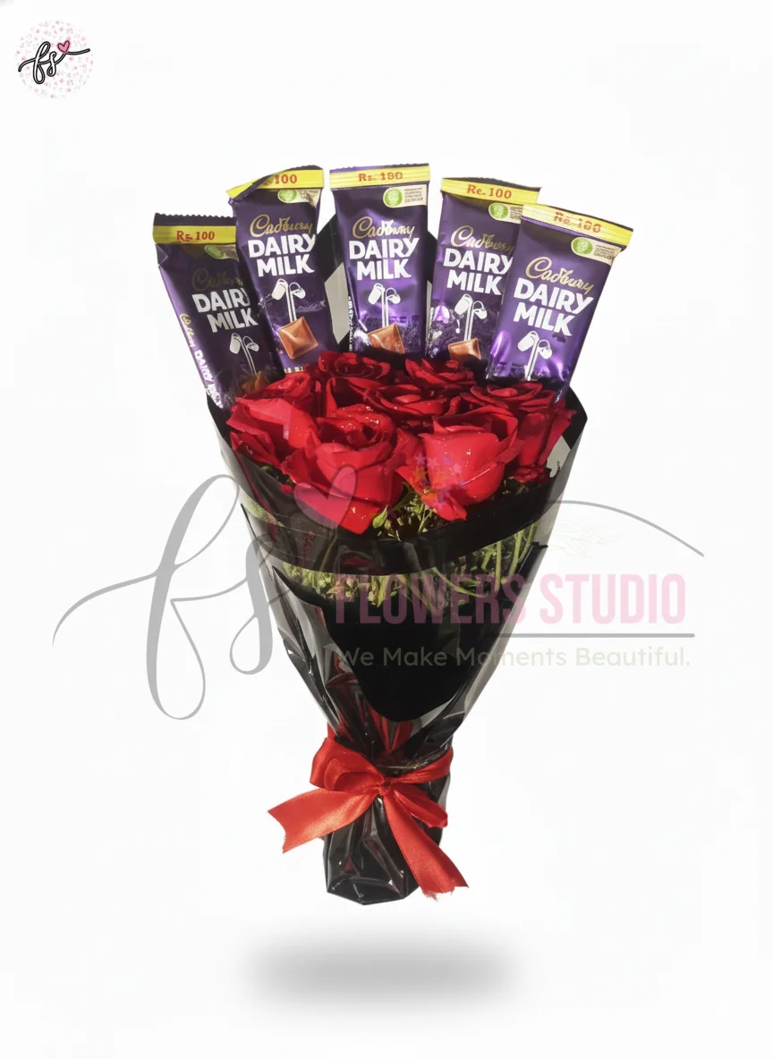Mini chocolate bouquet, beautifully arranged for romantic gestures, birthdays, and anniversaries in Faisalabad.